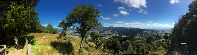 Signs at the entrance said there was a lookout at the top, and once out of the trees I came across a couple of beautiful spots. The first, where if you stepped off the path and onto a mound to look back over the trees, you are shown a view of Kapiti Island. Just around the corner is a seat and an impressive panoramic of the Reikorangi Valley.