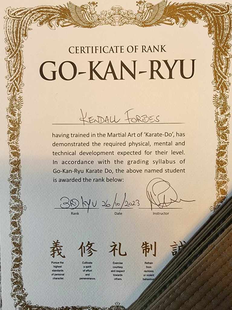 My focus for 2023 was to reach the rank of 3rd kyu / brown belt. This was achieved on Thursday 26 October.